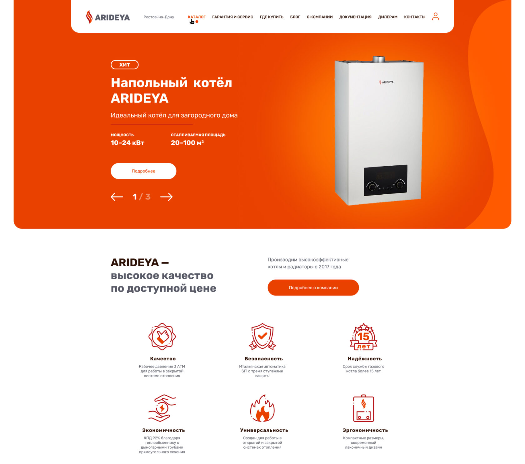 Корпоративный сайт с витриной товаров для производителя отопительного оборудования.