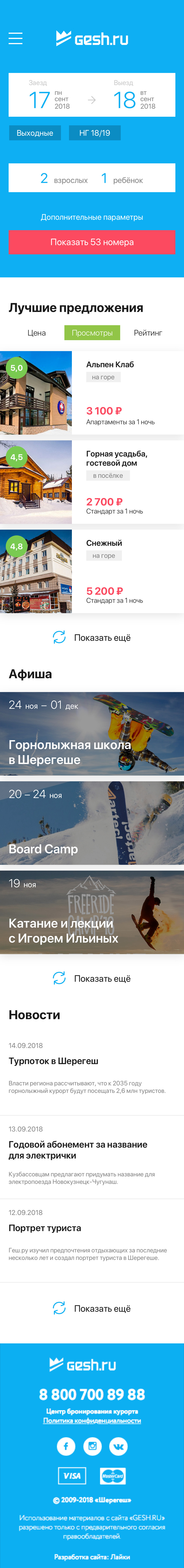 Так как большинство пользователей бронируют номера с мобильных устройств, было решено вывести систему бронирования на Gesh.ru в отдельное приложение. Упор был сделан на качественные фотографии гостиниц и номеров с подробным описанием.